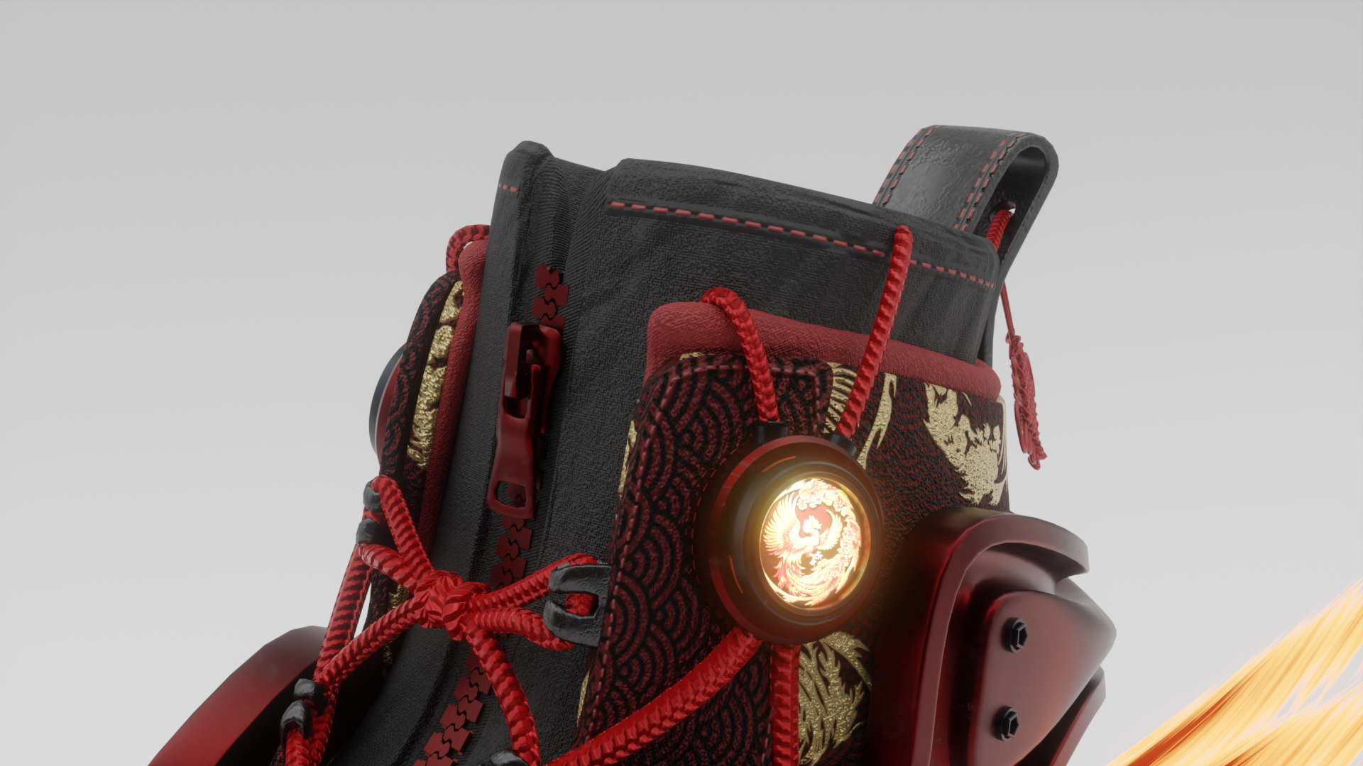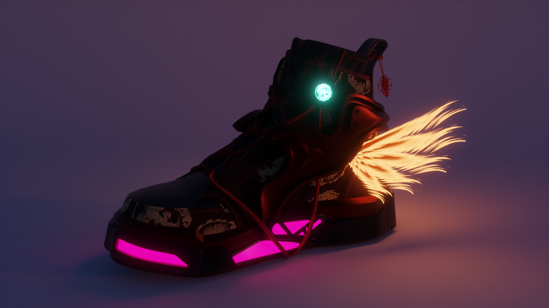 Digital Sneaker Creation for Fractal Labs. The theme was to create a Sneaker inspired by a future dominated by asian influence.