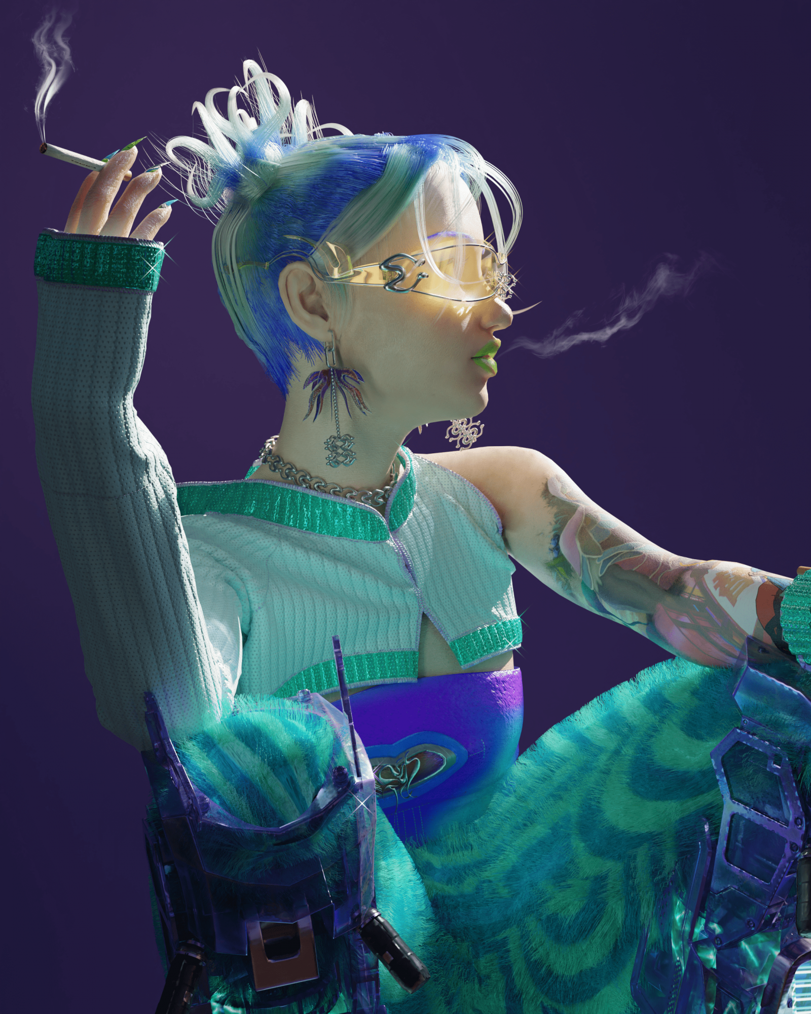 Avatar Created for the Output Open Call. I’ve created this fun avatar with the theme of Y2K in mind. Her boots are Inspired by the gameboy colour that’s why I called this project GameGirl. Her whole look should give a feeling of fun and childlike memories.