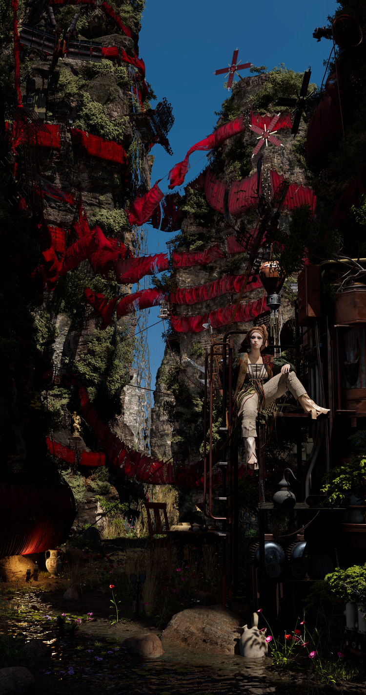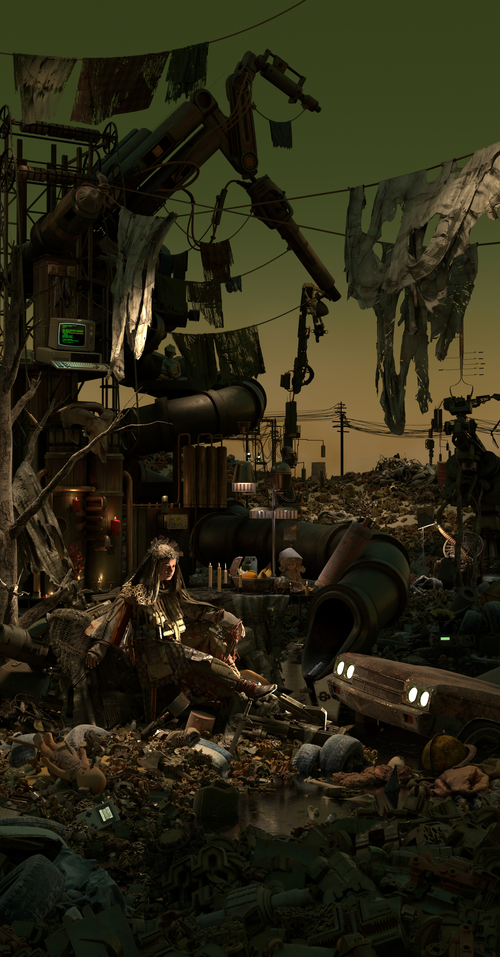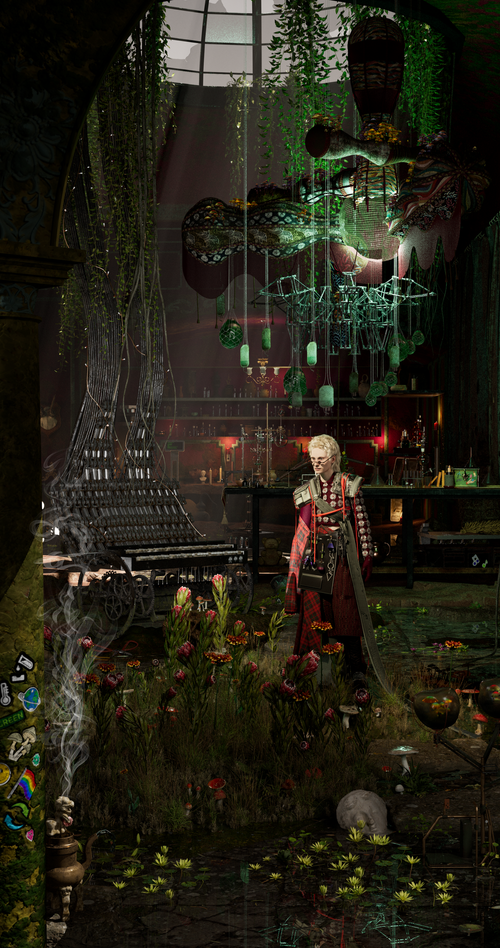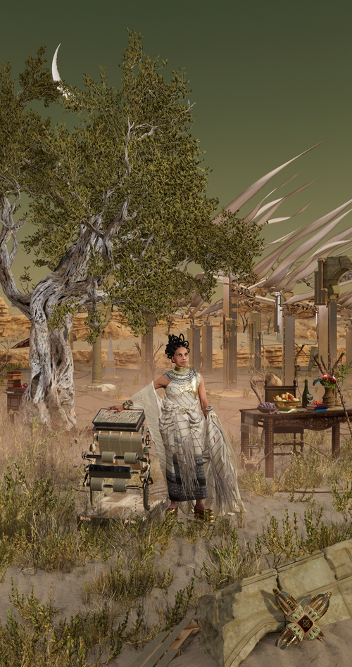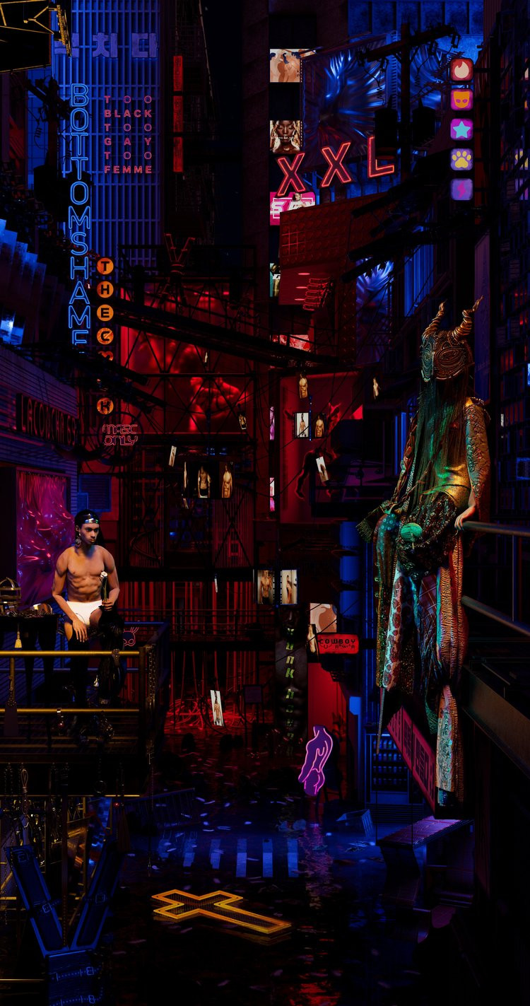 "Ipseity is a collection of 8 digital paintings on LED displays that contain windows into the worlds of 8 new deities that speak to the role technology plays into what it means to be human today. They explore notions of gender, sexuality, chosen family or cultural heritage, youth and wisdom among others. These scenes contain spaces, objects, costumes, machines that explore the myths of selfhood in today's technological world."