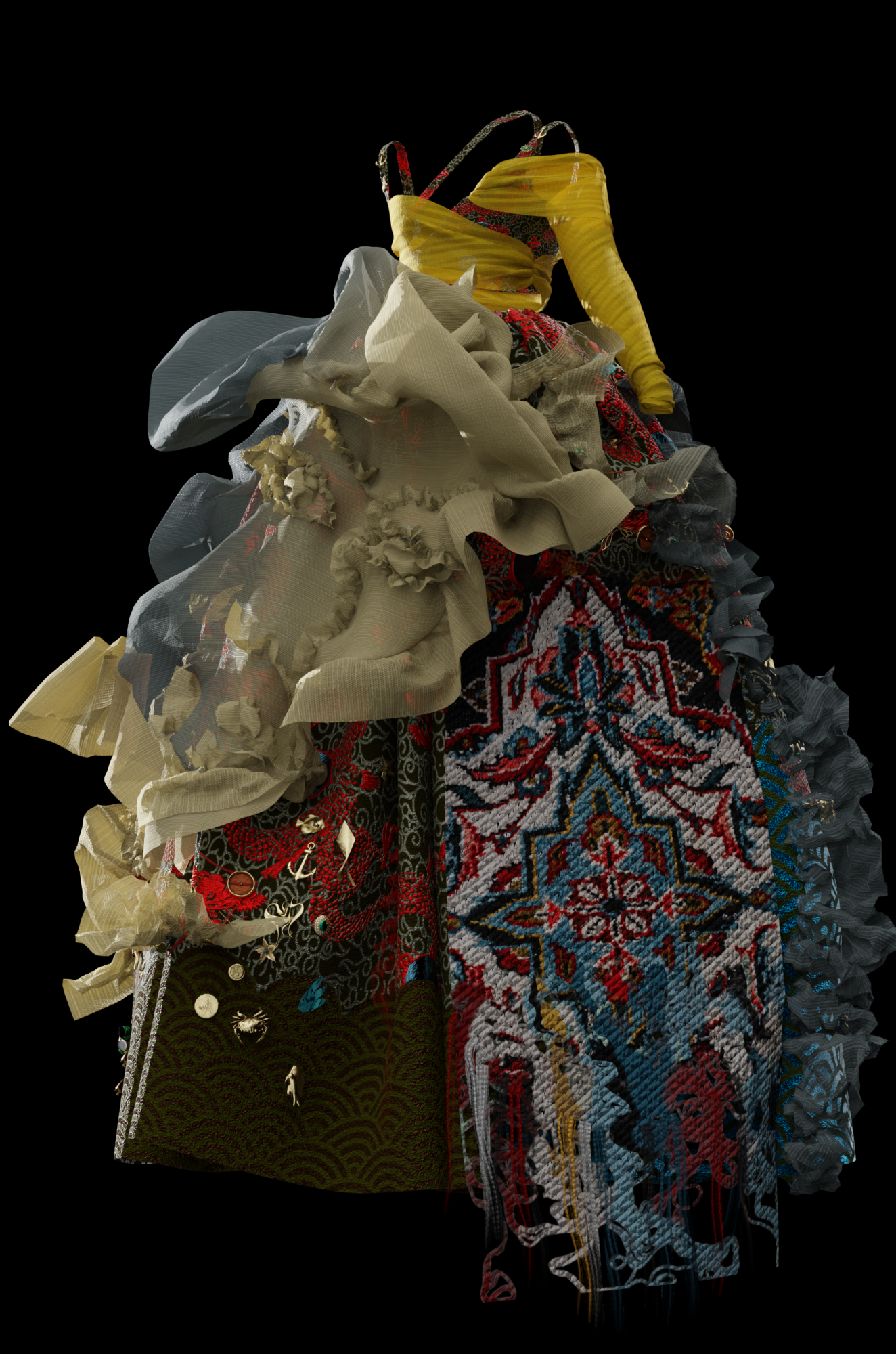 Digital costumes and cloth simulation created for art project IPSEITY.