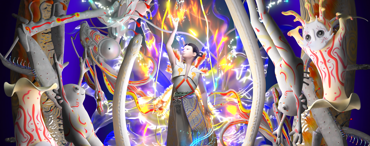 "The music video “Jomon'' weaves a tale of a profound ritual where different living beings come to life, led by the guiding hand of a shamanic Hatis Noit. Together with NAOWAO’s character design, CG animation, and ethereal sequences, “Jomon'' emerges as a myth, where the spiritual and natural worlds converge in a captivating celebration of life and death."